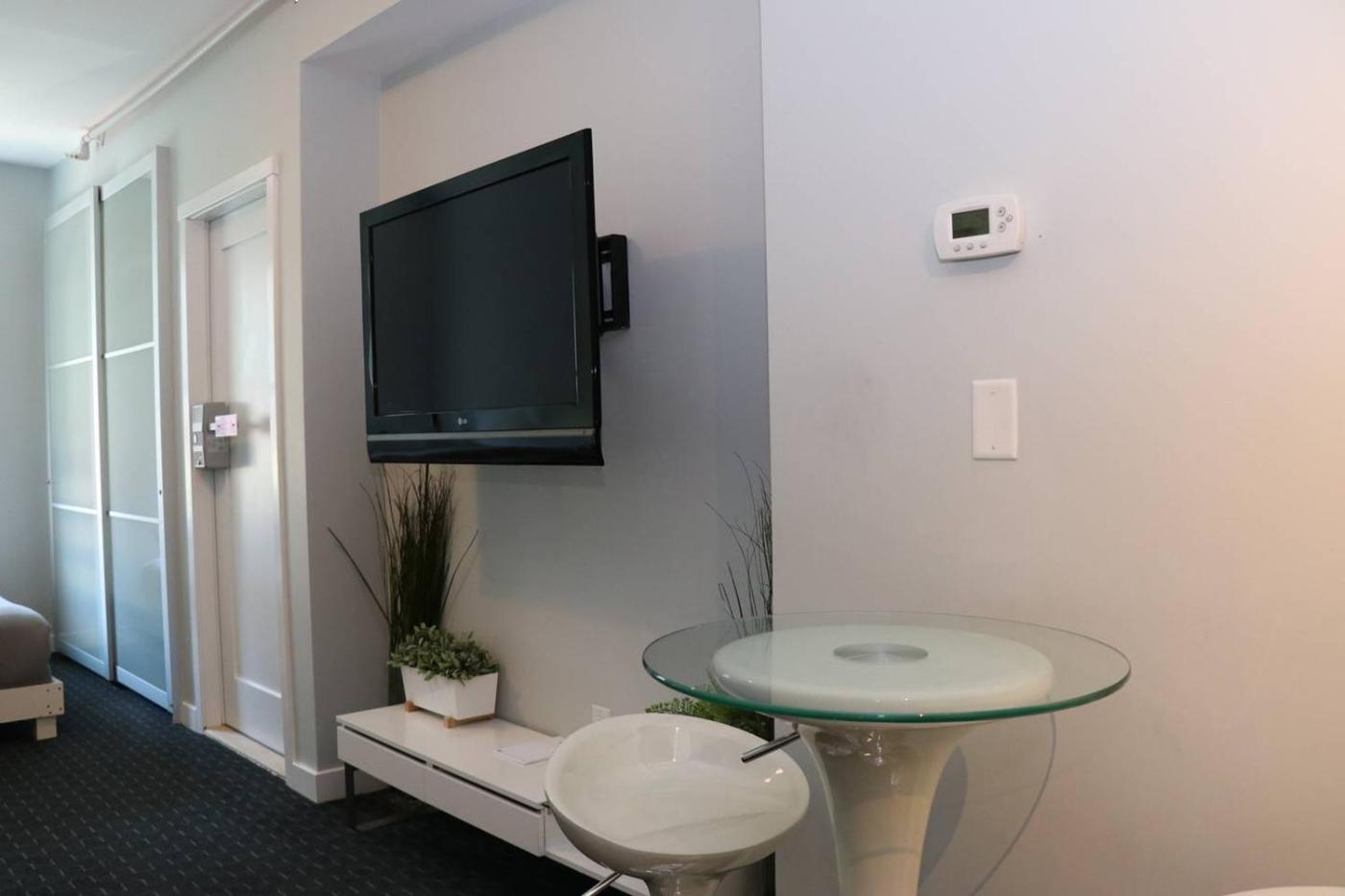 One-Bedroom Apartment. The air-conditioned apartment has 1 bedroom and 1 bathroom with a walk-in shower and a hairdryer. The well-fitted kitchenette features a stovetop, a refrigerator, kitchenware and a microwave. The apartment offers a washing machine, a coffee machine, a seating area, a flat-screen TV with cable channels, as well as city views. The unit has 1 bed.