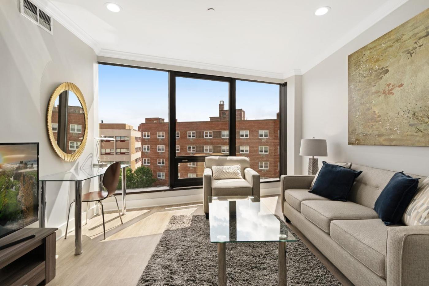 One-Bedroom Apartment. This apartment includes 1 living room, 1 separate bedroom and 1 bathroom with a bath or a shower and free toiletries. In the well-equipped kitchen, guests will find a stovetop, a refrigerator, a dishwasher and kitchenware. The apartment offers air conditioning, a washing machine, a tea and coffee maker, a wardrobe, as well as a flat-screen TV. The unit has 2 beds.