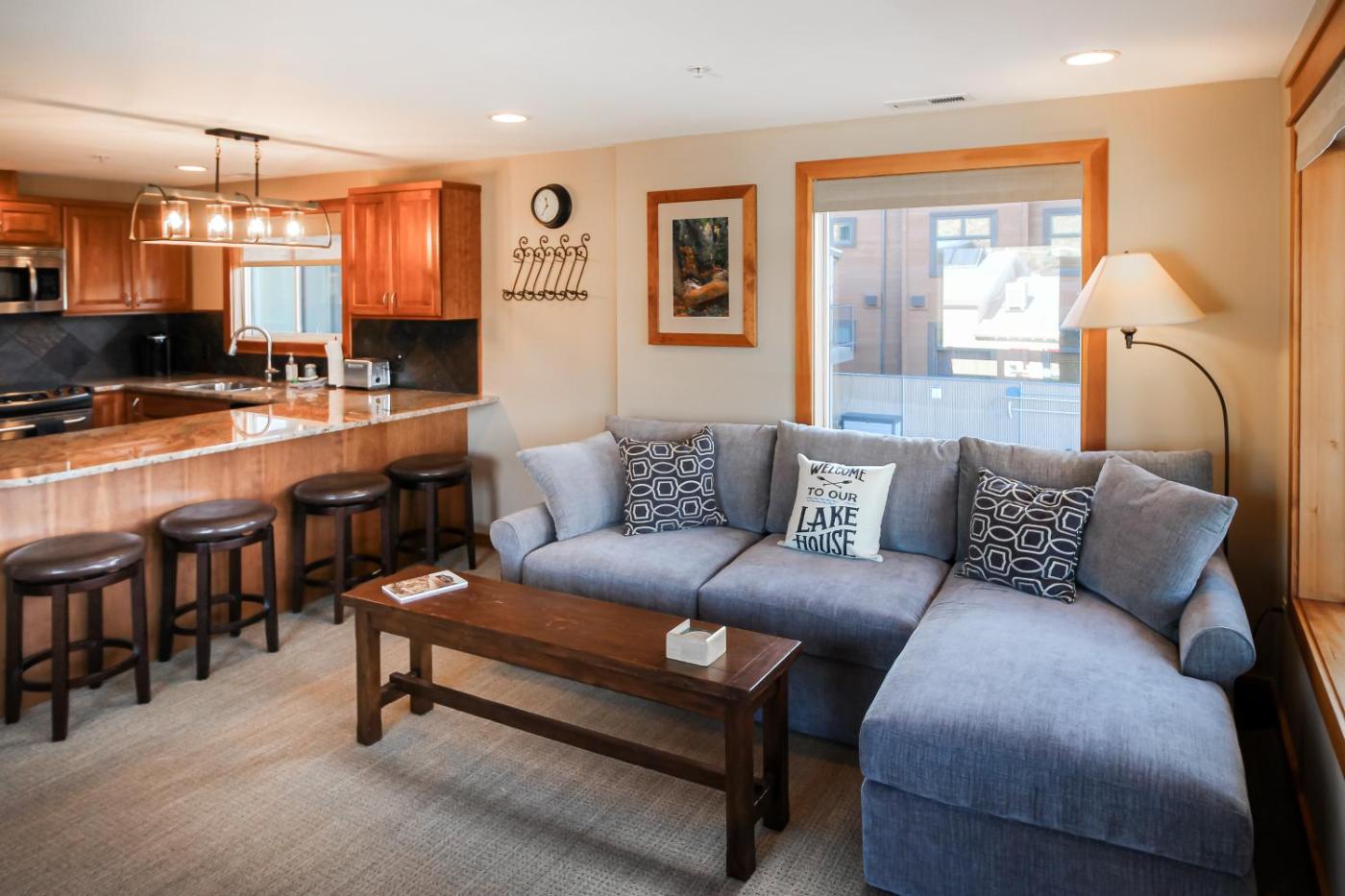 One-Bedroom Apartment. The pool with a view is the standout feature of this apartment. This apartment comes with 1 living room, 1 separate bedroom and 1 bathroom with a bath and free toiletries. Meals can be prepared in the kitchen, which features a stovetop, a refrigerator, a dishwasher and kitchenware. The air-conditioned apartment features a flat-screen TV with streaming services, a tea and coffee maker, a dining area, a barbecue as well as lake views. The unit has 2 beds. ;