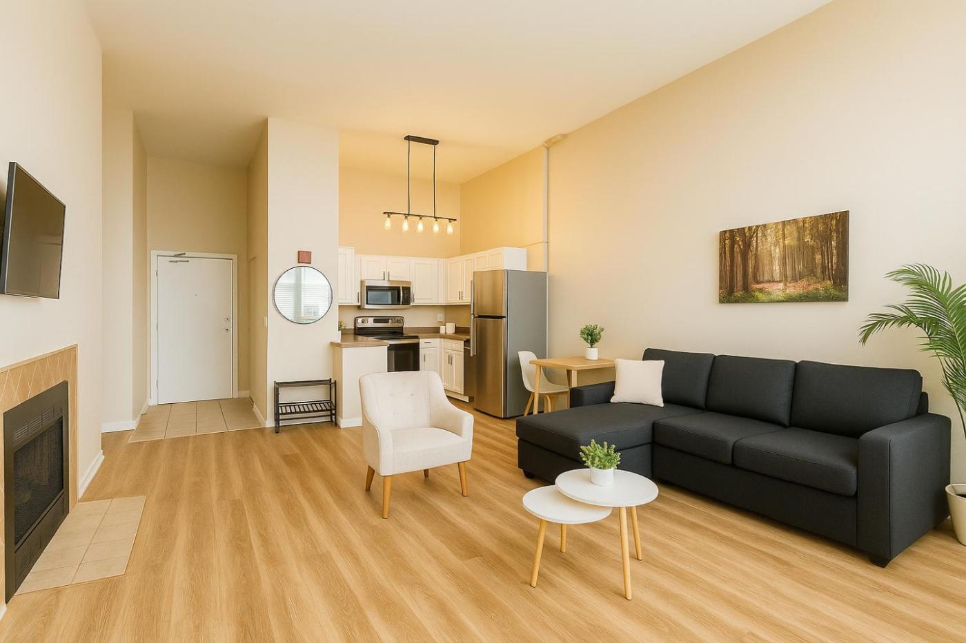 One-Bedroom Apartment. The air-conditioned apartment features 1 bedroom, 1 bathroom and a kitchen. The apartments kitchen is available for cooking and storing food. This apartment provides a washing machine and a flat-screen TV. The unit offers 3 beds.