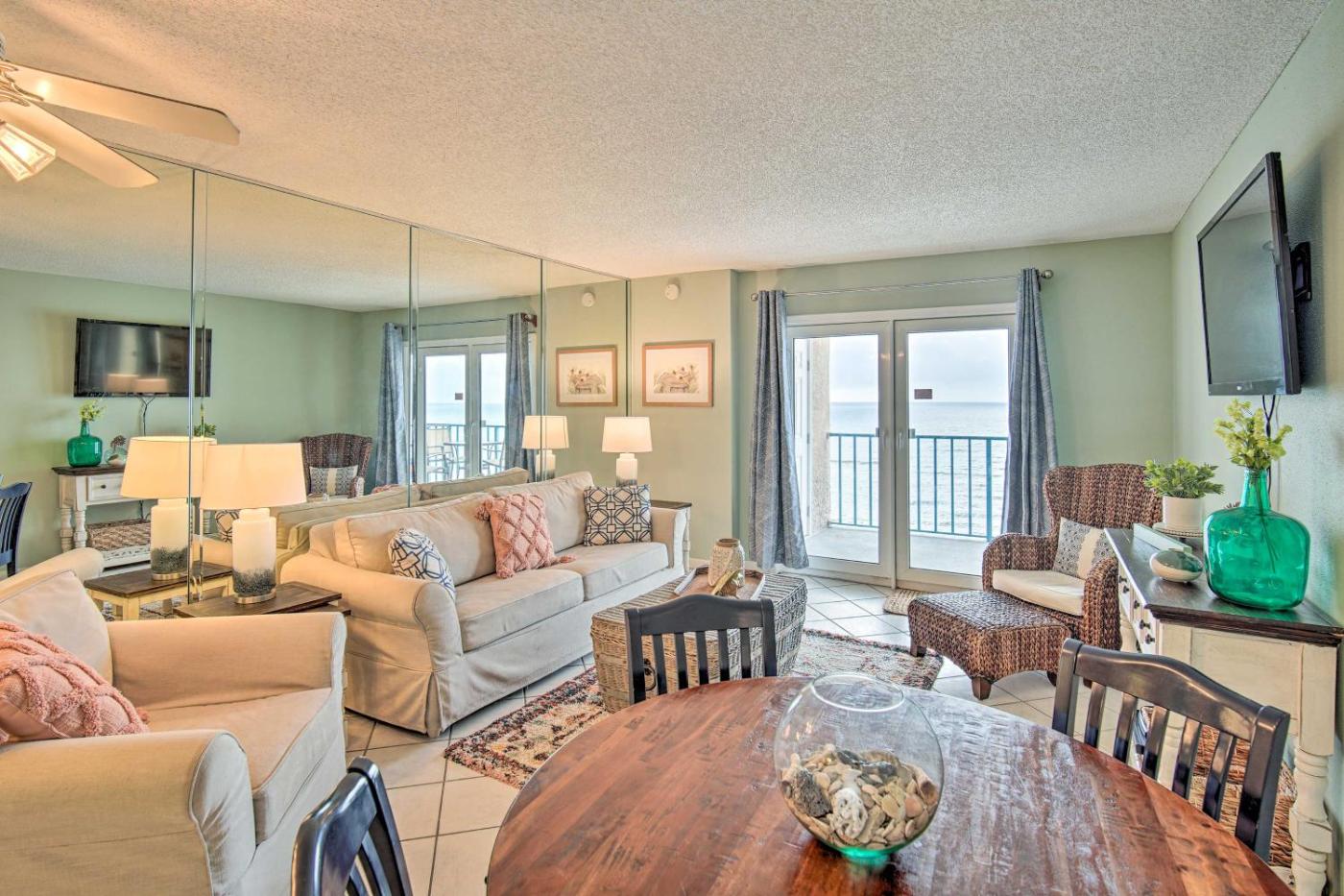 Cozy Beachfront Escape with Pool and Gulf Access! is a beachfront property located in Gulf Shores, a few steps from Gulf Shores Public Beach and 4.2 km from Gulf State Park Fishing Pier. The air-conditioned accommodation is 10 km from Alabama Gulf Coast Zoo. Providing free WiFi throughout the property, the non-smoking apartment features a spa centre.