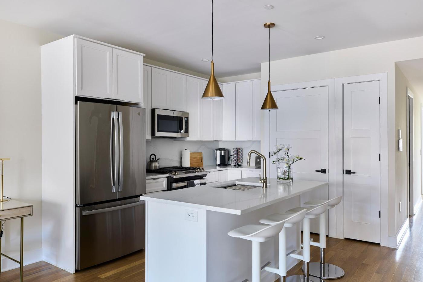 Three-Bedroom Apartment. Offering free toiletries, this apartment includes a private bathroom with a bath, a shower and a hairdryer. The fully equipped kitchen features a stovetop, a refrigerator, a dishwasher and kitchenware. The spacious air-conditioned apartment offers a flat-screen TV with streaming services, a washing machine, soundproof walls and a tea and coffee maker. The unit offers 4 beds.