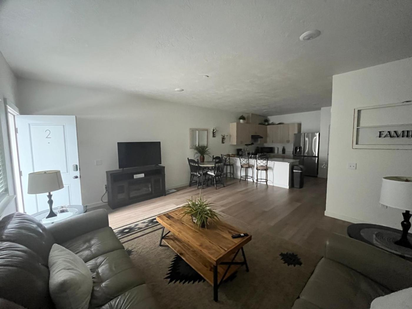 Two-Bedroom Apartment. The spacious apartment has 1 bedroom and 2 bathrooms with a walk-in shower and free toiletries. Guests will find a stovetop, a refrigerator, a dishwasher and kitchenware in the kitchen. The apartment also includes a barbecue. This air-conditioned apartment comes with a dining area, a flat-screen TV with streaming services a washing machine and a patio. The unit has 4 beds.