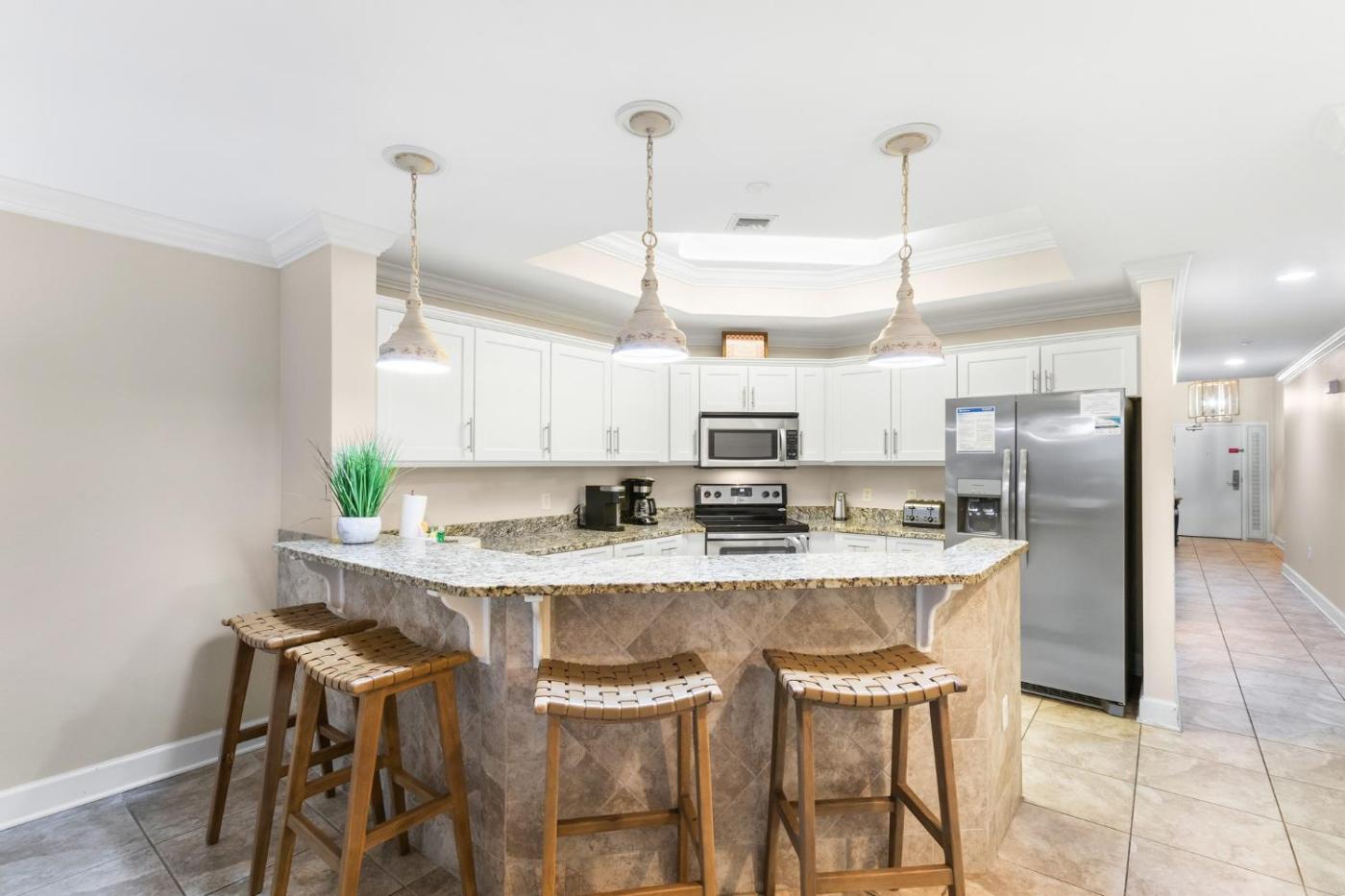 Three-Bedroom Apartment. Featuring a private entrance, this air-conditioned apartment is comprised of 1 living room, 3 separate bedrooms and 4 bathrooms with a bath and a shower. In the well-fitted kitchen, guests will find a stovetop, a refrigerator, a dishwasher and kitchenware. The spacious apartment offers a washing machine, a tea and coffee maker, a seating area, a dining area and a flat-screen TV with cable channels. The unit offers 5 beds.