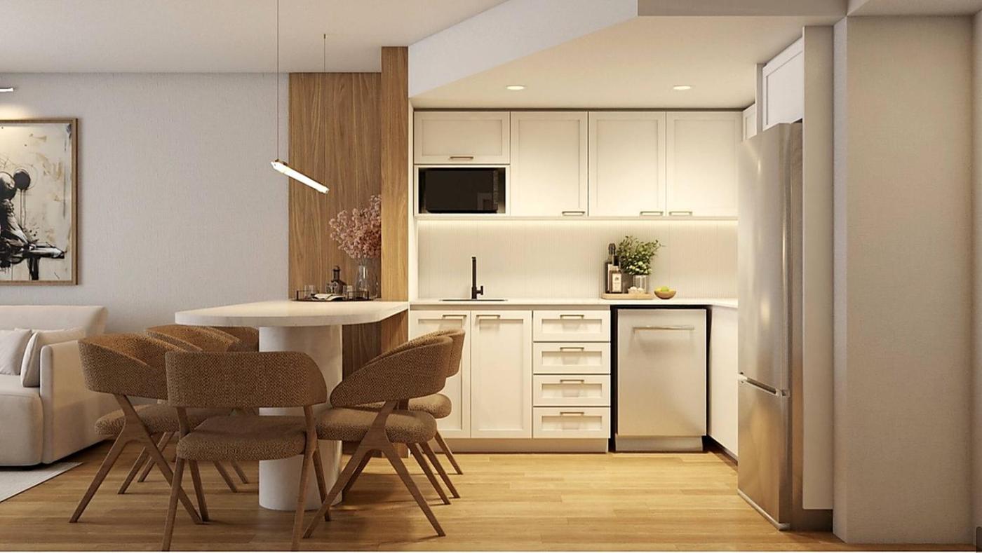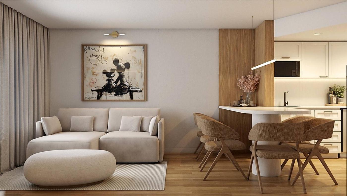 One-Bedroom Apartment. The apartment offers air conditioning, a washing machine, as well as a private bathroom featuring a bath and a shower. Guests can make meals in the kitchen that comes with a refrigerator, a dishwasher, kitchenware and a microwave. This apartment features a tea and coffee maker, tumble dryer and a TV.