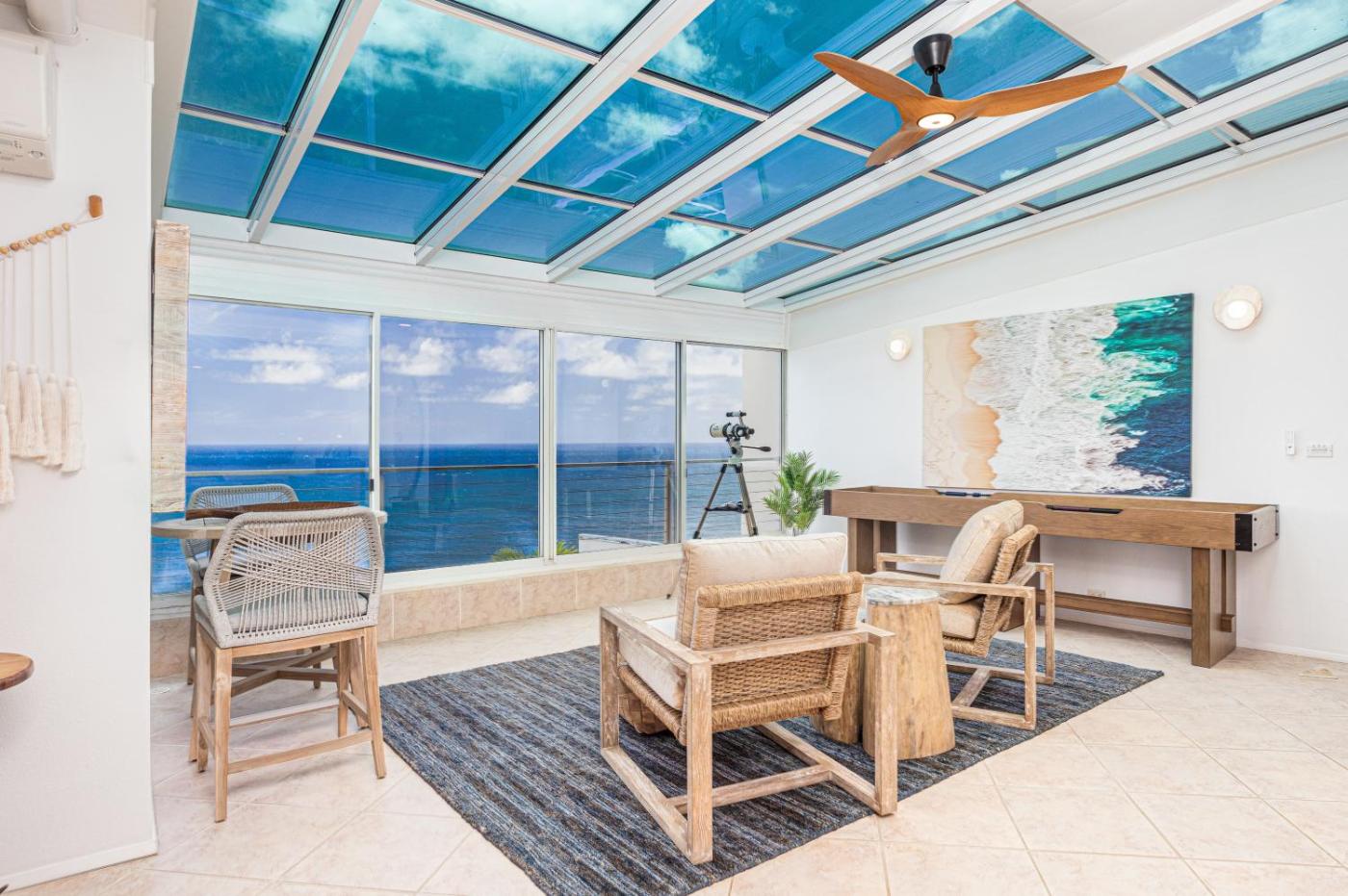 Situated in Princeville and only 400 metres from Hideaway Beach, Puu Poa 303 condo features accommodation with sea views, free WiFi and free private parking. The air-conditioned accommodation is 40 km from Lydgate Beach Park. The property is non-smoking and is located 1.6 km from Princeville Golf Club Prince Course.