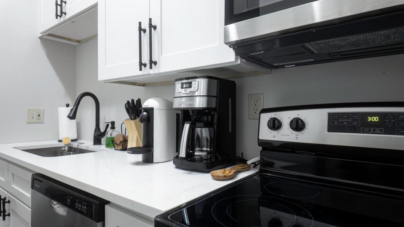 One-Bedroom Apartment. The air-conditioned apartment has 1 bedroom and 1 bathroom with a bath and a hairdryer. Guests can make meals in the kitchen that features a stovetop, a refrigerator, a dishwasher and kitchenware. The apartment features a washing machine, a tea and coffee maker, tumble dryer, a sofa, as well as a flat-screen TV. The unit has 1 bed.