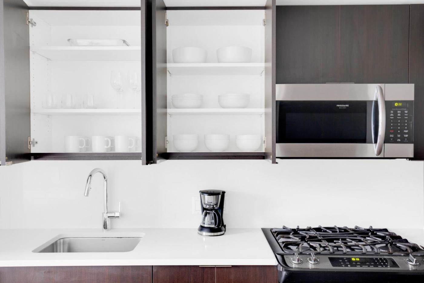 Studio Apartment. The apartment features 1 bedroom and 1 bathroom with a hairdryer and free toiletries. The well-equipped kitchen has a dishwasher, kitchenware, an oven and a microwave. The air-conditioned apartment provides a TV, a washing machine, a tea and coffee maker, tumble dryer as well as city views. The unit offers 1 bed.