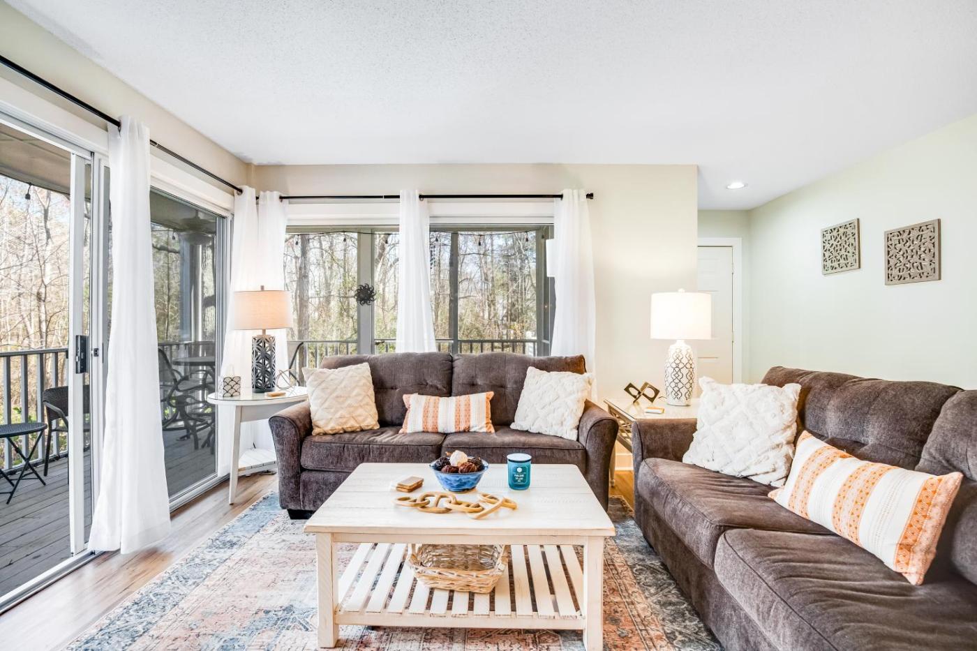 Three Bedroom Apartment. Guests will have a special experience as this apartment offers a fireplace. Boasting a private entrance, this spacious apartment also includes 3 bedrooms, 2 bathrooms and a seating area. The well-fitted kitchen has a stovetop, a dishwasher, kitchenware and an oven. This air-conditioned apartment is comprised of a dining area, a TV with cable channels a tea and coffee maker and an outdoor dining area. The unit has 4 beds.